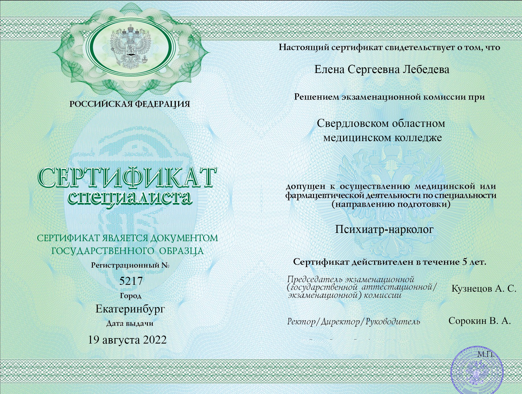 Елена Сергеевна Лебедева врач нарколог клиники доктора Стукаловой в Сарове